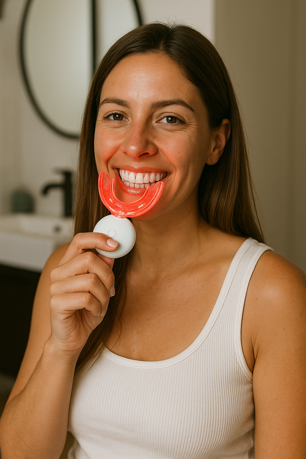 Discover the smart, painless way to care for your gums and smile. Our advanced red light therapy device is designed to target sensitivity, support healthier gums, and promote brighter teeth — all from the comfort of home. With 32 powerful therapeutic lamps, you’ll see noticeable improvements in as little as 2–3 weeks. The sleek, wireless design makes it effortless to use daily, whether you’re at home or on the go.